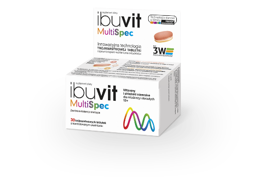 Ibuvit MultiSpec to starannie zbilansowany zestaw witamin i minerałów w technologii 3W MULTILAYER dla wsparcia Twojego zdrowia każdego dnia.